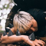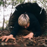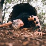 When we set off into the Chantry Woods near Guildford, Surrey, we didn’t have any set locations in mind for the photos. I’d prepared some paper spikes to affix onto her but we didn’t have any specific end place, just wandering as I like to do in the woods. We ended up finding this amazing hollowed out log and after I’d crawled inside, I knew this was the dark space we’d use for Kristina’s photos.
